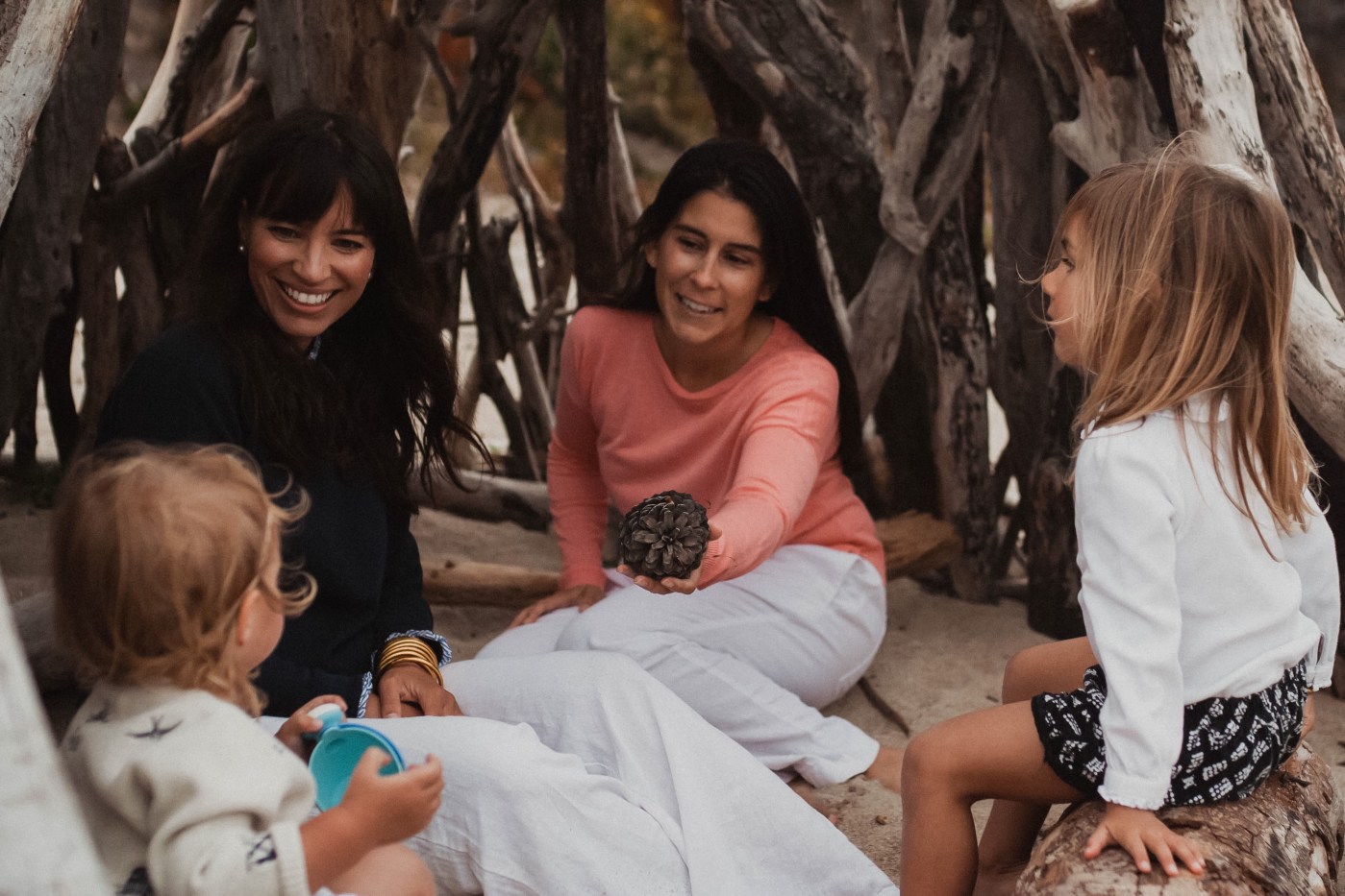 This past weekend we packed a few toys and invited some of our best girlfriends to enjoy a picnic and fun photo shoot at the beach. Thanks to one of our dearest friends, we found this epic little beach nook in Carmel. It’s got a perfect wind block in the form of rocky cliffs and these amazing hand-built driftwood teepee structures all up and down the beach. We had too much fun playing “house” with the girls and enjoying the open space (and time spent outside of the house!).